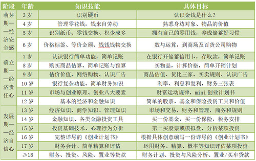 依据《少儿财商教育教学计划》中的发展目标任务: